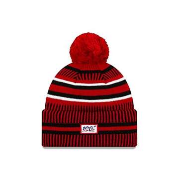 Show more Introducing the stylish and practical beanie from the renowned brand New Era, designed to bring you warmth and style all winter long. This officially licensed hat is not just a mere accessory; it embodies team spirit with its exquisite embroidered fabric applique that sets it apart from generic options. Crafted with care, the beanie features striking team color striping on the crown, making it a fashionable choice for any devoted fan.
