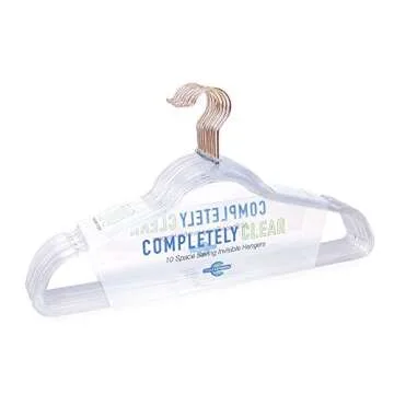 Show more Discover the magic of organization with the Completely Clear Space Saving Invisible Hangers from Closet Complete—an ultimate innovation that transforms your closet into a stylish haven. Designed for the discerning individual who values elegance and efficiency, these ultra-thin acrylic hangers offer unparalleled functionality while elevating your home's decor. Available in stunning shades of Gold, Chrome, and Rose Gold, they blend seamlessly with any aesthetic, giving you flexibility in design while optimizing your closet space. Say goodbye to bulky, traditional hangers and embrace the sleek sophistication that only Closet Complete can provide. Each set contains 10 hangers, meticulously crafted to support your wardrobe's needs with style!