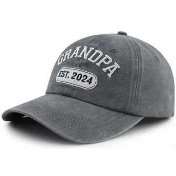 Funny Grandpa Est 2024 Baseball Cap | Adjustable Gray Hat for New Granddads