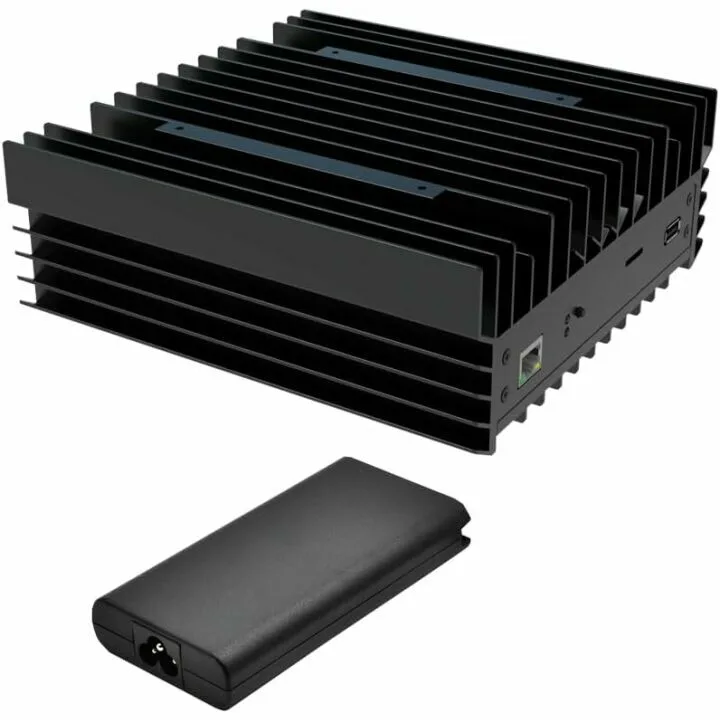 The miner operates at a low power consumption of 100 watts, making it an energy-efficient choice for crypto mining.