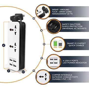 Introducing the POWERGENCE Travel Adapter Power Strip, your ultimate travel companion designed to keep you connected no matter where your adventures take you. This innovative charging station features two universal AC sockets, enabling you to plug in devices from anywhere in the world. Coupled with four fast-charging USB ports, this adapter ensures rapid and efficient charging of your smartphones, tablets, and more, making it perfect for both home use and...