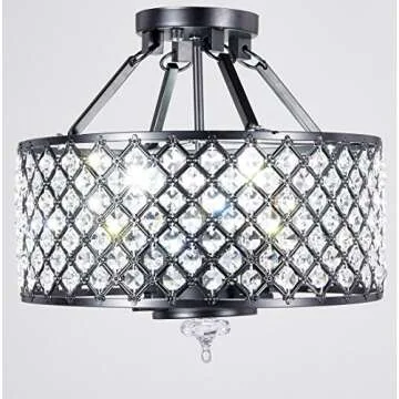 New Legend Lighting Antique Black Finish Round Shade Crystal Semi-Flush Mount Chandelier 4-Light Ceiling Fixture