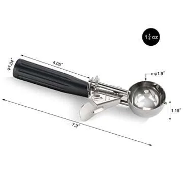 New Star Foodservice 34882 Commercial-Grade Thumb Press Food Disher/Ice Cream Scoop, 18/8 Stainless Steel, 1.25 oz, Size 30, Black