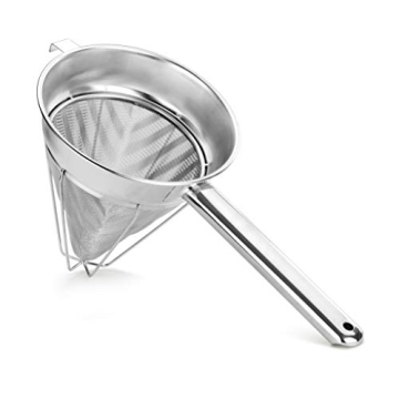 New Star Foodservice 38071 Stainless Steel Reinforced Bouillon Strainer - Durable 8-Inch Kitchen Tool