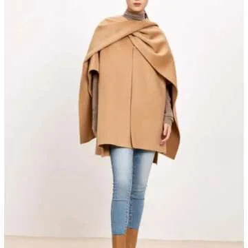 newbagggyy WRAP-Autumn Winter Woolen Cape For Women Double-Sided Soft Cashmere Short Over Coat Shawl (US, Alpha, One Size, Regular, Regular, Khaki)