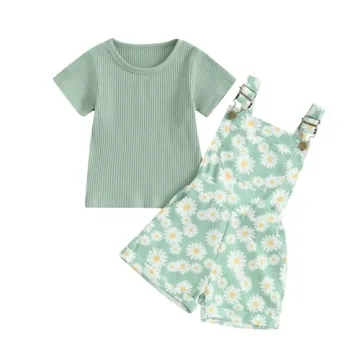 - Design: The ribbed knit t-shirt features a classic round neck and short sleeves, easily complemented by the daisy print suspender overalls. This combination creates an outfit that is not only cute but also bursting with energy, guaranteed to earn your child numerous compliments.