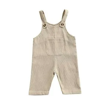 Show more Discover the perfect blend of style and comfort with our adorable baby boy and girl summer bib overalls romper jumpsuit. Crafted from the finest cotton, this outfit is designed to offer unparalleled softness and breathability, making it ideal for your little one's sensitive skin. The fabric not only feels great but also exhibits exceptional moisture-wicking properties to keep your baby dry, whether they're crawling in the grass or napping in the shade. With a sleek sleeveless design and cute button strap details, these one-piece overalls are undeniably fashionable and essential for every little wardrobe.