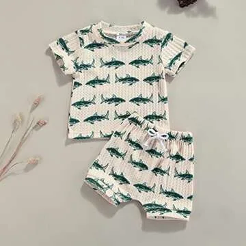 Newborn Baby Boys Summer Cute Clothes Sets 2pcs 0-18M Animal Printed Short Sleeve Pullover T Shirts Tops Shorts (Beige, 3-6 Months)