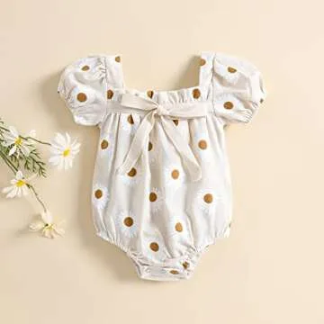Newborn Baby Girl Romper Daisy Print Short Sleeve Bodysuit Jumpsuit Summer Clothes Beige