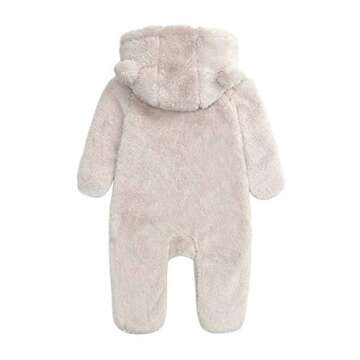 Show moreThis adorable baby fluffy romper is the ultimate winter essential for your little one. Made from high-quality polar fleece and lined with double cotton, this stylish romper is designed to pamper your baby's sensitive skin while ensuring unparalleled comfort. The clever full cover zipper design allows for easy dressing and diaper changes, making it a practical choice for parents. Two charming bear ears add an extra element of cuteness to the attached hood, ensuring your baby not only stays warm but also looks irresistibly adorable.