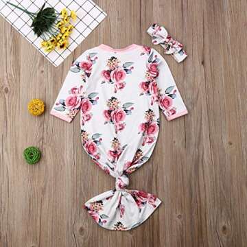 Show moreWelcome your little one in style with the Newborn Baby Long Sleeve Knotted Gown Nightgown, an exquisite selection for your baby's coming home outfit. Crafted from a premium cotton blend, this outfit guarantees a soft hand feeling that ensures a comfortable sleep for your baby. Ideal for newborns aged 0-3 months, this knotted design not only looks adorable but also serves practical functions, allowing for easy diaper changes without disturbing your little angel's slumber.