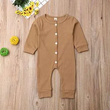 This adorable jumpsuit features a classic solid color design that makes it versatile and easy to mix and match with other wardrobe pieces. Available in various sizes, it fits true to size, so you can dress your newborn with confidence. Parents have praised its perfect fit, affirming how well it drapes on little bodies and how much their baby enjoys wearing it.