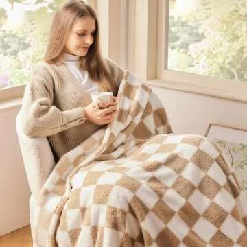 NEWCOSPLAY Knitted Brown White Checkered Blanket Super Soft Plush Throw for Couch Fuzzy Fluffy Microfiber Lightweight Blanket for Bed Sofa All Season Use (Brown White, Throw(50"x60"))