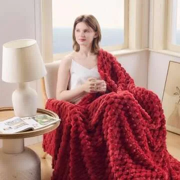 NEWCOSPLAY Super Soft Throw Blanket Red Premium Silky Flannel Fleece 3D Clouds Stylish Jacquard Lightweight Bed Blanket All Season Use 350GSM (Red, Throw(50"x60"))