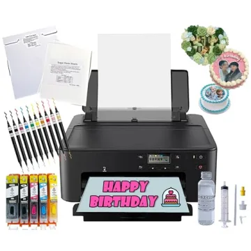 Show moreIntroducing the Newest Topper Cake Image Printer Set – an all-in-one solution tailored for dedicated bakers who want to elevate their cake decoration game to the next level! This cutting-edge wireless printer, designed for cake image printing, comes equipped with PGI-280XL and CLI-281XL cartridges, delivering high-quality prints that will leave a lasting impression. Whether you’re creating custom edible images for birthdays, weddings, or special events, this set ensures top-notch results with every print. With the convenience of a wireless setup, you can easily connect to your devices and start printing right away. Coupled with premium sugar frosting sheets (25 count, 8.5" x 11"), your cakes will feature vibrant and delicious designs that taste as good as they look.