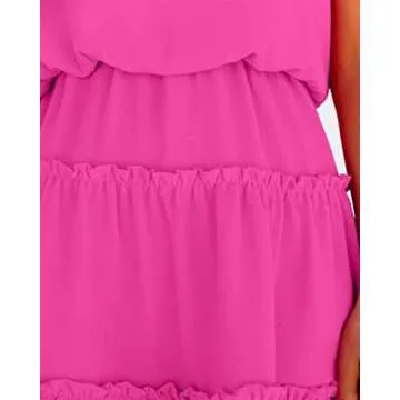Newffr Womens V Neck Summer Dress Sleeveless Mini Dress Ruffle Dress Spaghetti Strap Racerback Sun Flowy Dress Rose