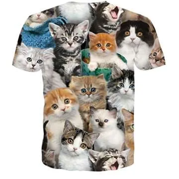 NEWISTAR Teen Junior Youth Casual 3D Printed Cat Tshirt Short Sleeve Summer Blouse Tees Shirt