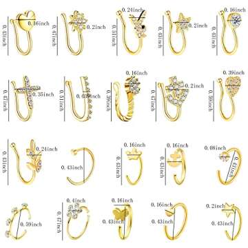 NEWITIN 6 Pairs Stainless Steel Nose Stud Rings for Women Clip on Nose Rings Non Piercing Inlaid Cubic Zirconia Fake Nose Ring for Women
