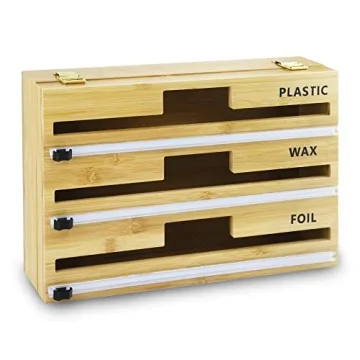 Show moreTransform your cluttered kitchen drawers into a haven of organization with the NEWMA 3 in 1 Foil Organizer. This elegant and functional kitchen accessory is designed to hold your aluminum foil, plastic wrap, and wax paper, making it easy to access the wrap you need without digging through a messy drawer. The organizer, crafted from high-quality bamboo, not only adds a touch of natural beauty to your kitchen but also ensures durability and sturdiness. Its clever design and safe cutting mechanism make it a must-have for any kitchen, promoting efficiency while eliminating the frustrations associated with traditional boxes.