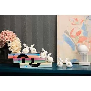 Show moreWelcome spring into your home with the enchanting Newman House Studio Table Easter Bunny Figurine Decorations. This delightful set of six bunny figurines is the perfect addition to your Easter décor, offering both style and charm. Crafted from durable polystone, each bunny boasts a sleek white finish accented by elegant golden details. Measuring 3.5L x 3W x 4.1H inches, this set fits perfectly on any table, mantle, or shelf, making it a versatile centerpiece for your holiday celebrations. Each bunny is uniquely posed, exuding a playful personality that will resonate with both children and adults alike. You can choose to display them with the personalized letters facing out or hidden, allowing for a customizable décor experience that complements your spring aesthetic effortlessly.