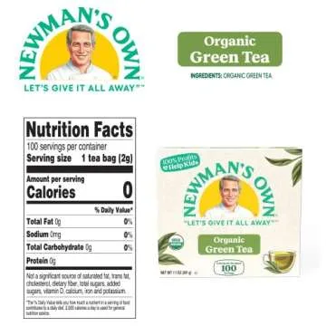 Newman's Own Organic Green Tea with 100 Individually Wrapped Tea Bags Per Box (Pack of 2) USDA Certified Contains Caffeine Brew Hot
