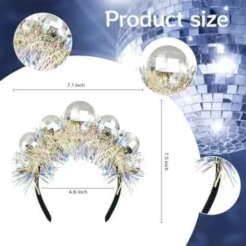 Newmemo Vintage Silver Disco Costume Headpieces - Mirror Ball Headband with Head Boppers for Women, Girls, Party, Bday, NYE