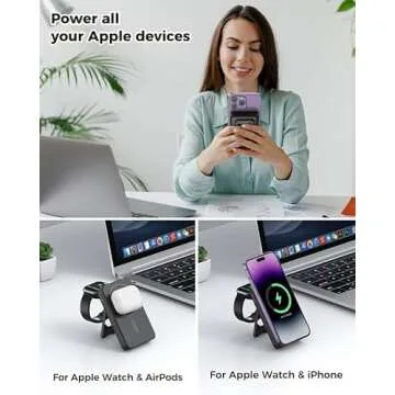 Show more The Portable Dual Charger for iWatch and iPhone is an innovative accessory designed for those who value convenience and efficiency. Whether you're at home, in the office, or on-the-go, this powerful dual charger lets you effortlessly power up your iPhone and Apple Watch simultaneously. Featuring a 10000mAh battery capacity, it ensures that your devices stay charged throughout the day without the hassle of multiple chargers cluttering your space.