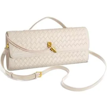 NEWROGENG Woven Clutch Purse - Stylish Evening Bag for Women - Cream White