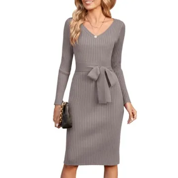 Show moreStep into the spotlight this season with the **Newshows Women’s 2024 Fall Sweater Dress**. This elegant long-sleeve V-neck dress is expertly crafted from a soft, breathable, and stretchy material that allows for unrestricted movement, ensuring you stay both stylish and comfortable. Designed as a versatile addition to your wardrobe, this bodycon dress not only flatters your curves but also provides warmth during chilly fall days. With its ribbed knit texture and perfectly belted fit, you can easily dress it up or down, making it a delightful choice for any occasion.