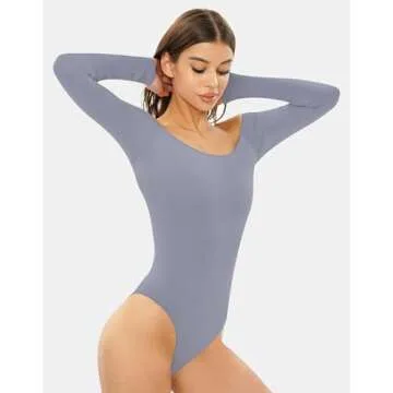 NEWVISISTER Women Seamless Off Shoulder Bodysuit Long Sleeve Tops T Shirt Jumpsuit Classy Collection, Slate, Medium-Large