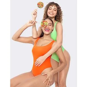 NEWVISISTER Womens Scoop Neck Sleeveless Tank Top Bodysuits Racerback Body Suits Jumpsuit, Orange, Medium
