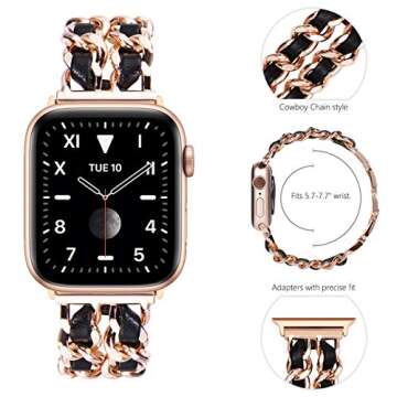 ... Show more Transform your Apple Watch into a stunning piece of jewelry with this exquisite replacement band from Newways. This stylish band expertly merges functionality with fashion, making it the perfect accessory for the modern woman. Its sleek design allows for a seamless transition from sporty to sophisticated, ensuring you look fabulous for any occasion. Crafted from high-quality materials, the band features strong stainless steel lugs that secure your watch with precision, providing both durability and elegance.