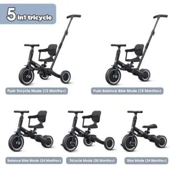 newyoo Toddler Bike - Convertible 5-in-1 Tricycle with Push Handle for 1-3 Year Olds
