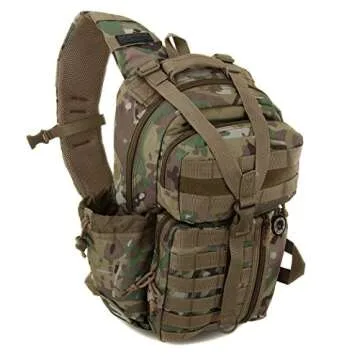 Designed with excellent storage options, the bag includes three zippered front pockets, one zippered main pocket, and a rear pocket specifically for hydration, so you can easily access what you need without rummaging through. The wide, padded adjustable shoulder strap ensures a comfortable fit, complemented by a metal accessory hook and a durable large buckle snap. Additionally, Molle straps, D rings, and several attachment points allow for personalized setup by conveniently securing extra pouches or accessories as necessary.