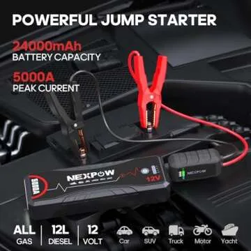 NEXPOW Car Jump Starter,Car Battery Jump Starter Pack 5000A Peak Q12 for All Gas and Up to10.0L Diesel Engine 12V Auto Battery Booster,Jumper Cables,Portable Lithium Jump Box with LED Light/USB QC3.0