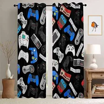 Nextchange Boys Gaming Window Curtains, Teens Gamepad Curtains, Video Games Controller Window Treatments Curtains - Thermal Insulated Room Curtains for Living Room, 2 Window Curtain Panels
