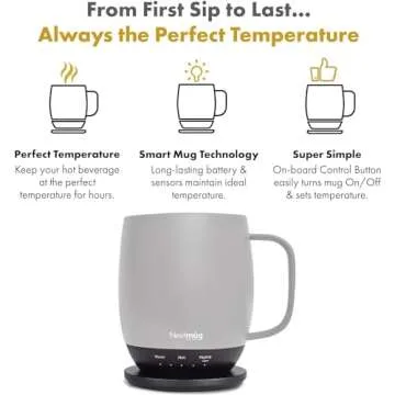 The Nextmug is revolutionizing the way coffee, tea, and other beverages are enjoyed! Imagine sipping your favorite drink, perfectly heated to your preference, at any time and place. With its innovative smart technology, this mug allows you to select temperatures of Warm (130°), Hot (140°), or Piping (150°), ensuring every sip is as delightful as the first. No more rushing to finish your drink before it gets cold; the Nextmug keeps your beverage at the ideal temperature for hours on end....
