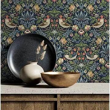 Designed for simplicity, this wallpaper allows for repositioning during installation, making it a forgiving choice for those who might hesitate to tackle wallpapering. The vivid design features gold birds that pair beautifully with a navy blue backdrop, creating a striking accent wall for your dining room, bedroom, or hallway!