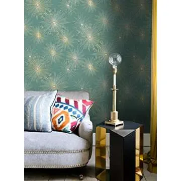 NextWall Starburst Geo Mid Century Peel and Stick Wallpaper (Teal & Metallic Gold)