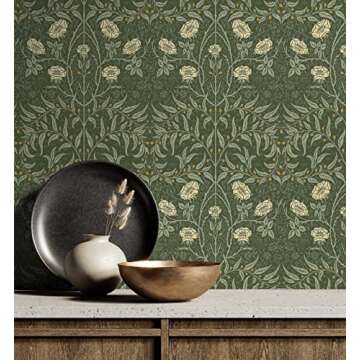 NextWall Stenciled Floral Peel and Stick Wallpaper (Evergreen)