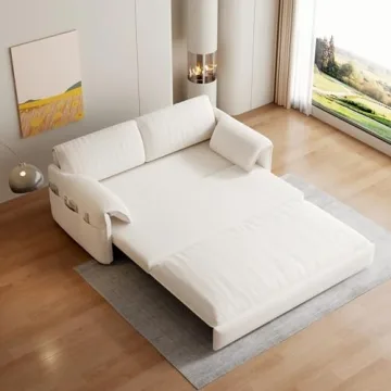 Show moreMeet the perfect solution for your small living space needs – the Neylory 63.8" Queen Pull Out Sofa Couch Bed. This innovative 3 in 1 convertible sleeper sofa effortlessly transitions from a chic loveseat to a cozy chaise lounge, or a comfortable queen-size bed in just seconds. Ideal for guest rooms or studio apartments, this stylish yet practical piece of furniture maximizes your living area while providing essential functionality. Tailored from premium velvet fabric with high-density sponge upholstery, this sofa not only boasts an eye-catching beige color but also ensures a soft and inviting seating experience for family and friends alike.