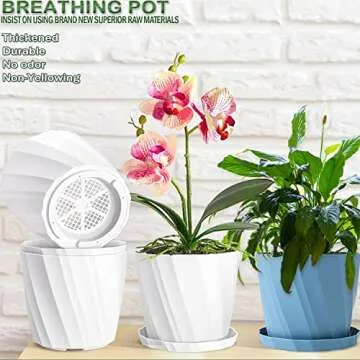 Show more Introducing our exquisite decorative flower pots, designed not just for style but also for superior functionality. With a sleek modern Nordic aesthetic, these pots are perfect for any home or office setting, making them the ideal addition to your indoor or outdoor gardening collection. Each set includes five white pots measuring 8 inches in diameter and 7.3 inches in height. These pots are engineered with multiple drainage holes located both in the middle and on the sides, promoting better drainage and keeping your plants healthier.