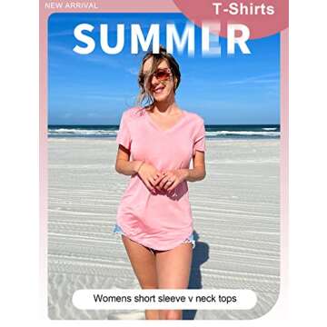 NIASHOT Womens Short Sleeve V-Neck Loose Casual T-Shirts Summer Tops