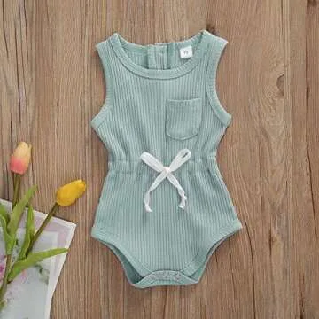 niceclould Toddler Kids Baby Girls Boys Ribbed Romper Sleeveless Round Neck Drawstring Waist Jumpsuit Summer Clothes (Lake Blue, 12-18Months)