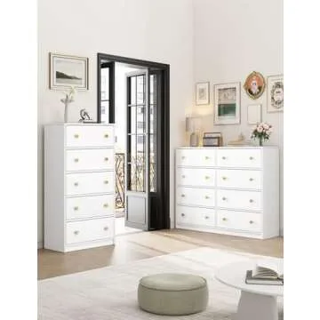 Nicehill White Dresser for Bedroom with 5 Drawers, Fabric Dresser Storage Tower, Chest of Drawers for Closet, Living Room, Hallway, Entryway, Woodeen Dresser(White)
