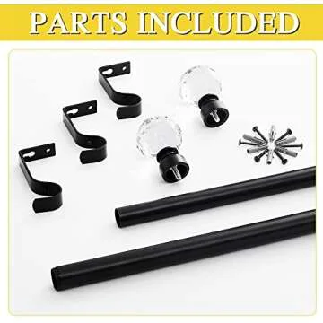 NICETOWN Drapery Curtain Rod Set with Classic Decorative Faceted Ball Finials for Windows 66 to 144, 1 inch Diameter Curtain Rod Set Adjustable Length 72 to 144"(6-12 Feet) Length, Matte Black