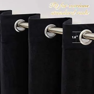 NICETOWN Halloween Black Curtains Patio Blackout Velvet Curtain Panels, Media Movie Theater Room Decor, Energy-efficient Velvet Woven Home Theater Eyelet Top Drapes for Living Room (1 Pair, W52xL96)