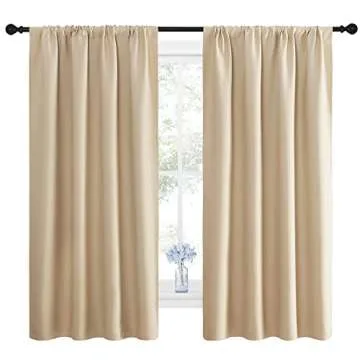 Show more Discover the ultimate drapery solution with the NICETOWN Blackout Curtains! These elegant curtains are designed to enhance your windows with style while providing exceptional light-blocking capabilities. Each package contains two beautifully crafted panels, measuring 42 inches wide by 63 inches long. The unique construction features a rod pocket design, accommodating curtain rods up to 2 inches in diameter, making installation a breeze.