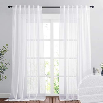 NICETOWN White Semi Sheer Curtains - Elegant Linen Texture for Light & Privacy