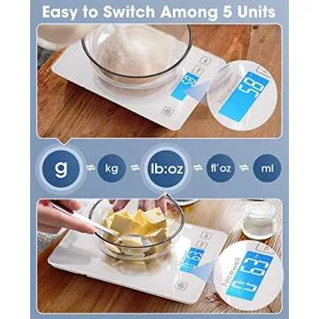 Nicewell Food Scale, 22lb Digital Kitchen White Scale Weight Grams and oz for Cooking Baking, 1g/0.1oz Precise Graduation,Tempered Glass Scale (White)